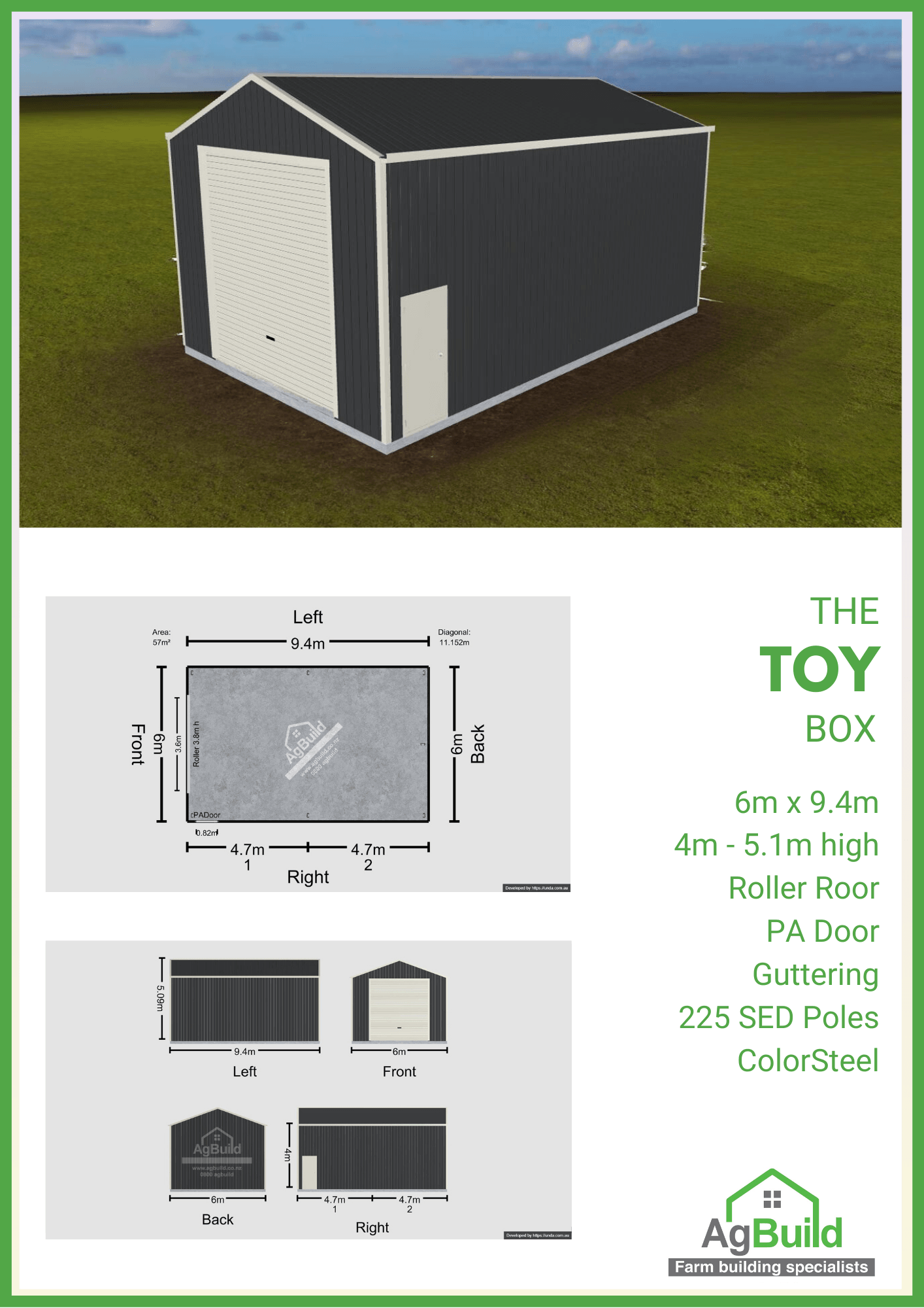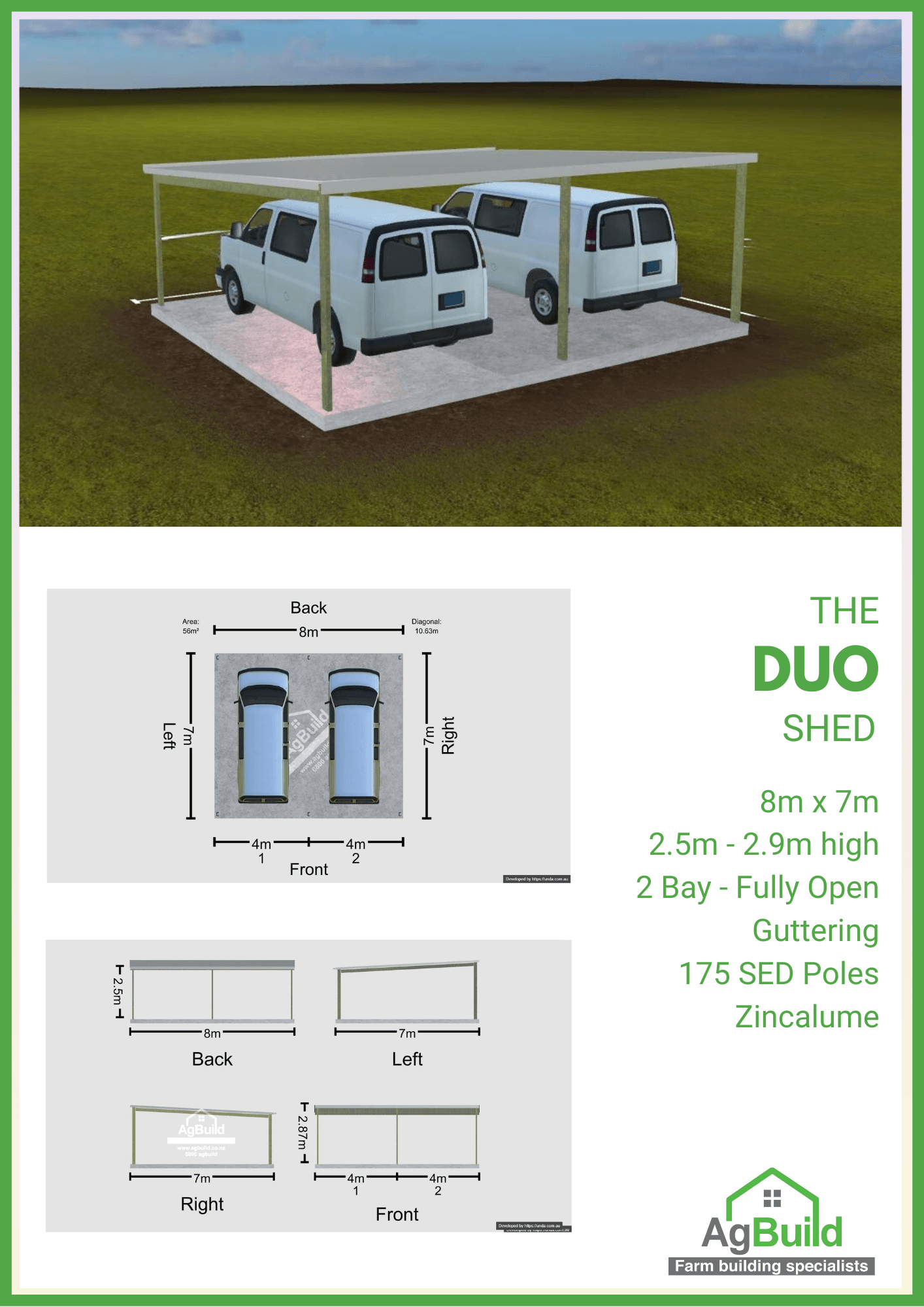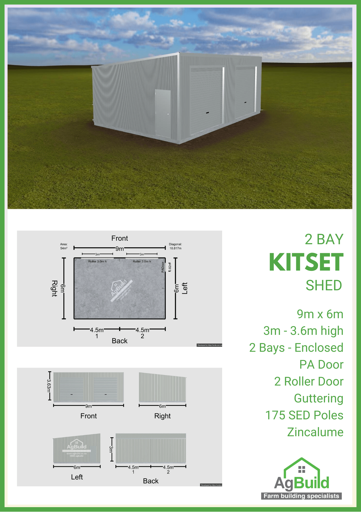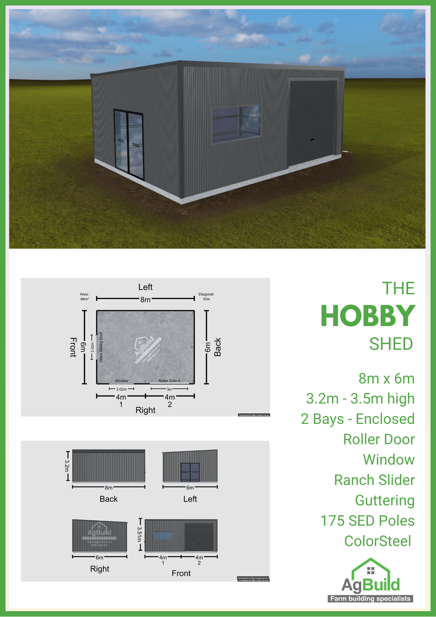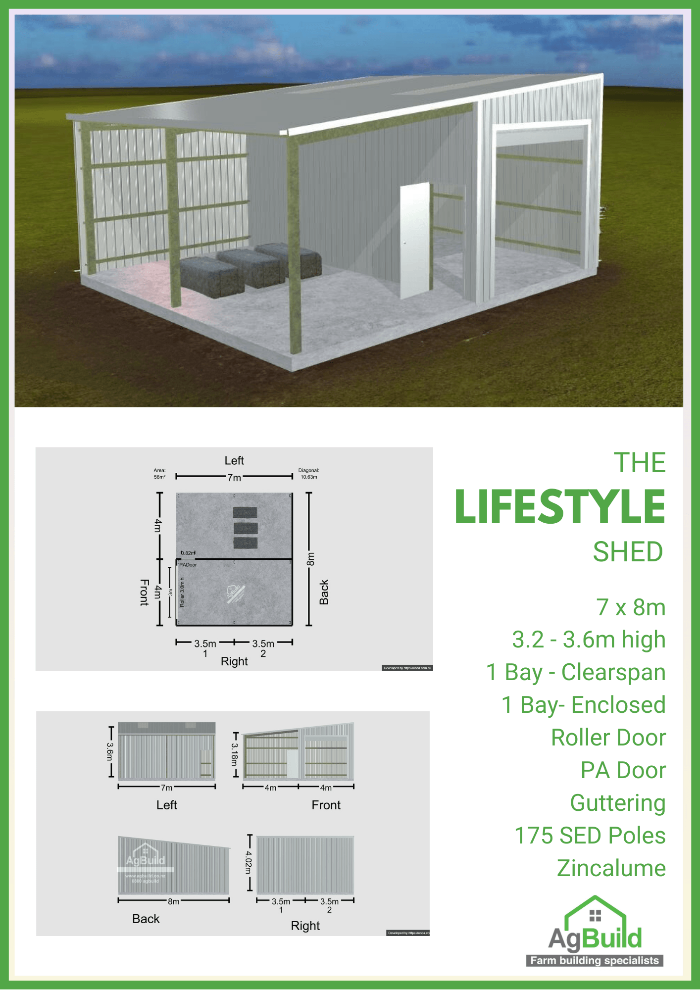 Designed and built by AgBuild, our 1-2 Bay Sheds are made to last—strong, tidy, and tailored to your needs.