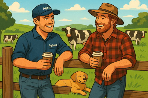 Because at AgBuild, we believe the best conversations don’t always happen in a tent. Sometimes they happen over a fence post, with plans on the bonnet, and boots in the dirt.
